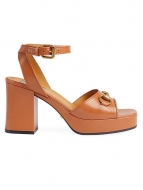 Gucci Lady Horsebit 88MM Leather Platform Sandals DARK BROWN