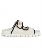 Miu Miu Logo Cotton Crochet Sandals NERO AVORIO