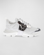 John Galliano Paris Mens Typographic Logo Hidden-Lace Low-Top Sneakers, White/Black