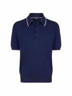 Stefano Ricci Knit Short Sleeve Four-Button Polo Shirt NAVY BLUE