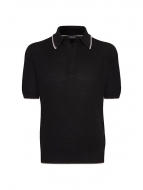 Stefano Ricci Knit Short Sleeve Four-Button Polo Shirt BLACK