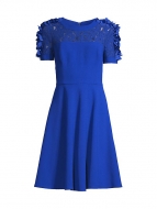 Shani Floral Applique Fit-&-Flare Crepe Dress BLUE
