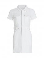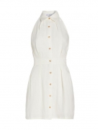 Hevron Domino Linen Sleeveless Minidress WHITE