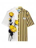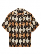 Prada Short-Sleeved Argyle-Pattern Silk Twill Shirt