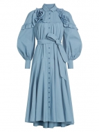 Marchesa Rosa Cotton Balloon-Sleeve Midi Shirtdress