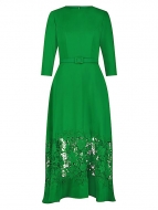 Mac Duggal Crepe Lace Belted Midi-Dress