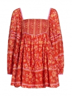 Free People Jaymes Smocked Floral Midi-Dress BURGUNDY COMBO
