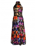 Santorelli Floral Charmeuse Fit & Flare Midi-Dress