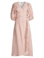 Juan de Dios Ermita Geometric-Print Linen Wrap Midi-Dress