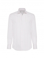 Brunello Cucinelli Textured Striped Cotton Slim Fit Shirt With Spread Collar