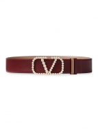 Valentino Garavani Vlogo Signature Reversible Belt In Shiny Calfskin With Pearls 40 MM