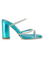 Bettina Vermillon Carmen 85MM Crystal-Embellished Metallic Mules ACQUA