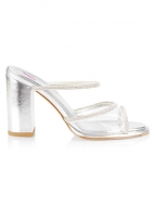 Bettina Vermillon Carmen 85MM Crystal-Embellished Metallic Mules SILVER