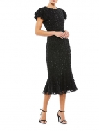 Mac Duggal Flutter Sleeve Beaded Midi Dress BLACK