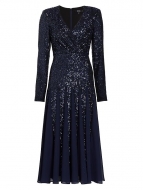 Marchesa Notte Long-Sleeve Sequined Tulle Cocktail Midi-Dress