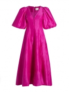 Aje Dusk Linen-Blend Puff-Sleeve Midi-Dress