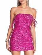 Retrofete Cassandra Sequin Fringe Dress HOT PINK