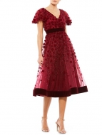 Mac Duggal Velvet Flower-Embellished Midi-Dress BURGUNDY