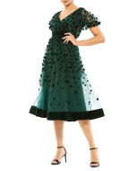 Mac Duggal Velvet Flower-Embellished Midi-Dress EMERALD GREEN