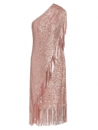 Badgley Mischka Sequin Fringe One-Shoulder Midi Dress