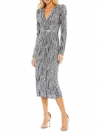 Mac Duggal Embellished Faux Wrap Midi-Dress CHARCOAL
