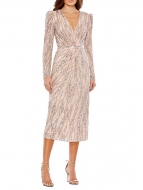 Mac Duggal Embellished Faux Wrap Midi-Dress ROSE GOLD