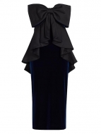 Badgley Mischka Velvet Bow Peplum Midi-Dress