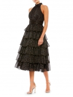 Mac Duggal High-Neck Tiered Dotted Midi-Dress