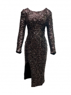 Teri Jon by Rickie Freeman Beaded Metallic Jacquard Cocktail Dress
