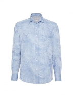 Brunello Cucinelli Palm Jacquard Slim Fit Shirt With Spread Collar
