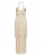 SIMKHAI Baldwin Draped Fring Halter Midi-Dress