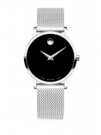 Movado Museum Classic Black Dial, Stainless Steel Mesh Bracelet Watch