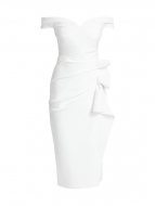 Chiara Boni La Petite Robe Off-the-Shoulder Midi Dress WHITE
