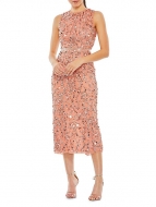 Mac Duggal Sequin High-Neck Midi-Dress SUNSET