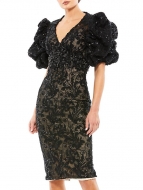 Mac Duggal Puff-Sleeve Embellished Midi Dress