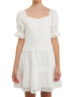 Endless Rose Sweetheart Lace Combo Puff Mini Dress