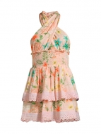 Kivari Zoe Paisley Linen One-Shoulder Minidress