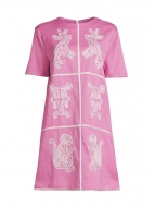 Stella Jean Embroidered Short-Sleeve Shift Minidress