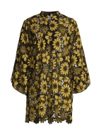 La Vie Style House Sunflower Open-Lace Long-Sleeve Mini Caftan