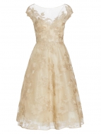 Teri Jon by Rickie Freeman Metallic Floral-Embroidered Midi-Dress