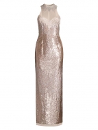 Lela Rose Long-Sleeve Draped Sheath Maxi Dress