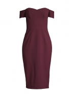 Dress The Population Bailey Off-The-Shoulder Midi Dress BURGUNDY