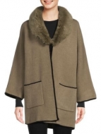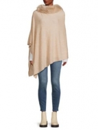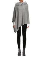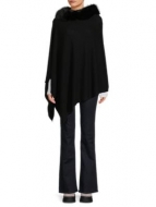 Sofia Cashmere Faux Fur Trim Asymmetric Poncho