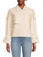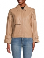 WOLFIE FURS Leather & Down Puffer Hooded Jacket
