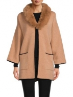 WOLFIE FURS Made For Generations Merino Shearling & Fur Trim Cape Jacket