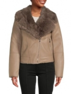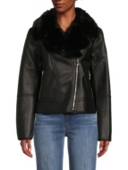 Patrizia Luca Faux Fur Trim & Lined Moto Jacket