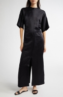 LOULOU DE SAISON Ruby Fitted Linen & Silk Satin Dress_Black