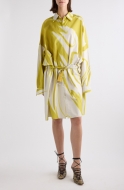 Dries Van Noten Dindi Print Belted Long Sleeve Cotton Poplin Shirtdress_Lime