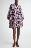 Oscar de la Renta Orchids Cap Sleeve Stretch Cotton Poplin Shirtdress_White Multi