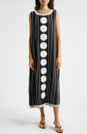 La Vie Style House Daisy Bead Stripe Embellished Midi Dress_Black White